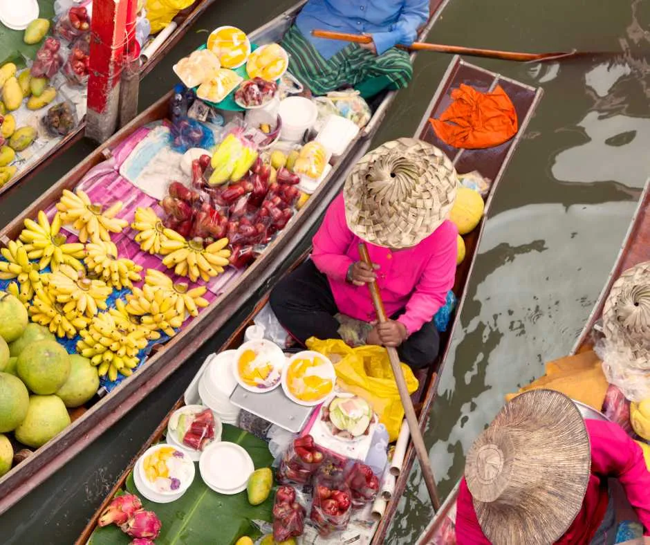 - Partecipa a una gita fuori porta da Bangkok per esplorare il famoso mercato galleggiante, dove potrai fare shopping direttamente dalle barche e assaggiare cibi locali.