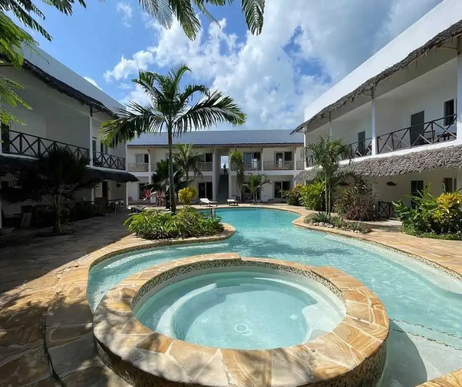 Con camere moderne, piscina e una posizione strategica vicino ai ristoranti e ai negozi locali, il Kibanda Lodge è perfetto per chi desidera vivere sia la bellezza delle spiagge zanzibarine sia l’autentica cultura locale. Inoltre, potrai aggiungere un emozionante safari infrasettimanale per esplorare la fauna della savana tanzaniana.